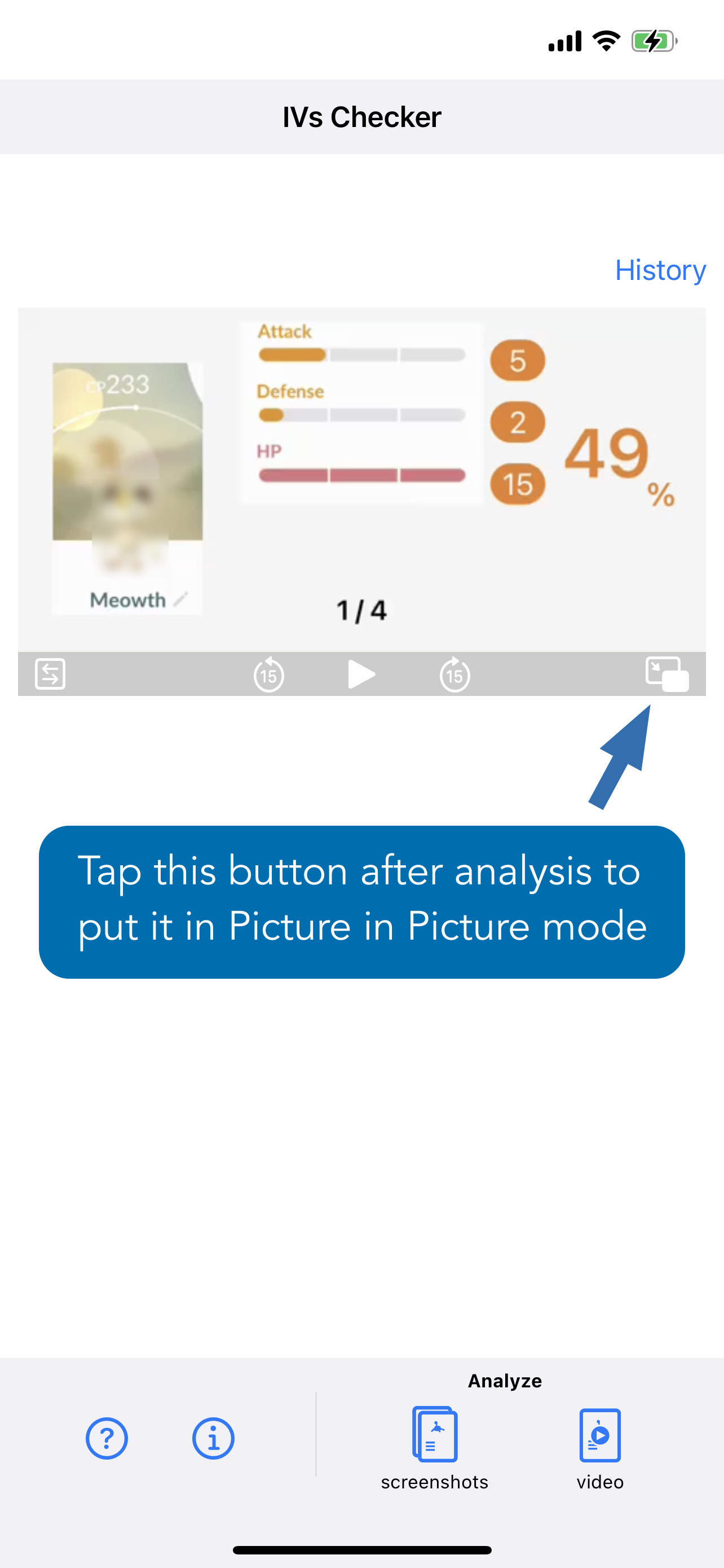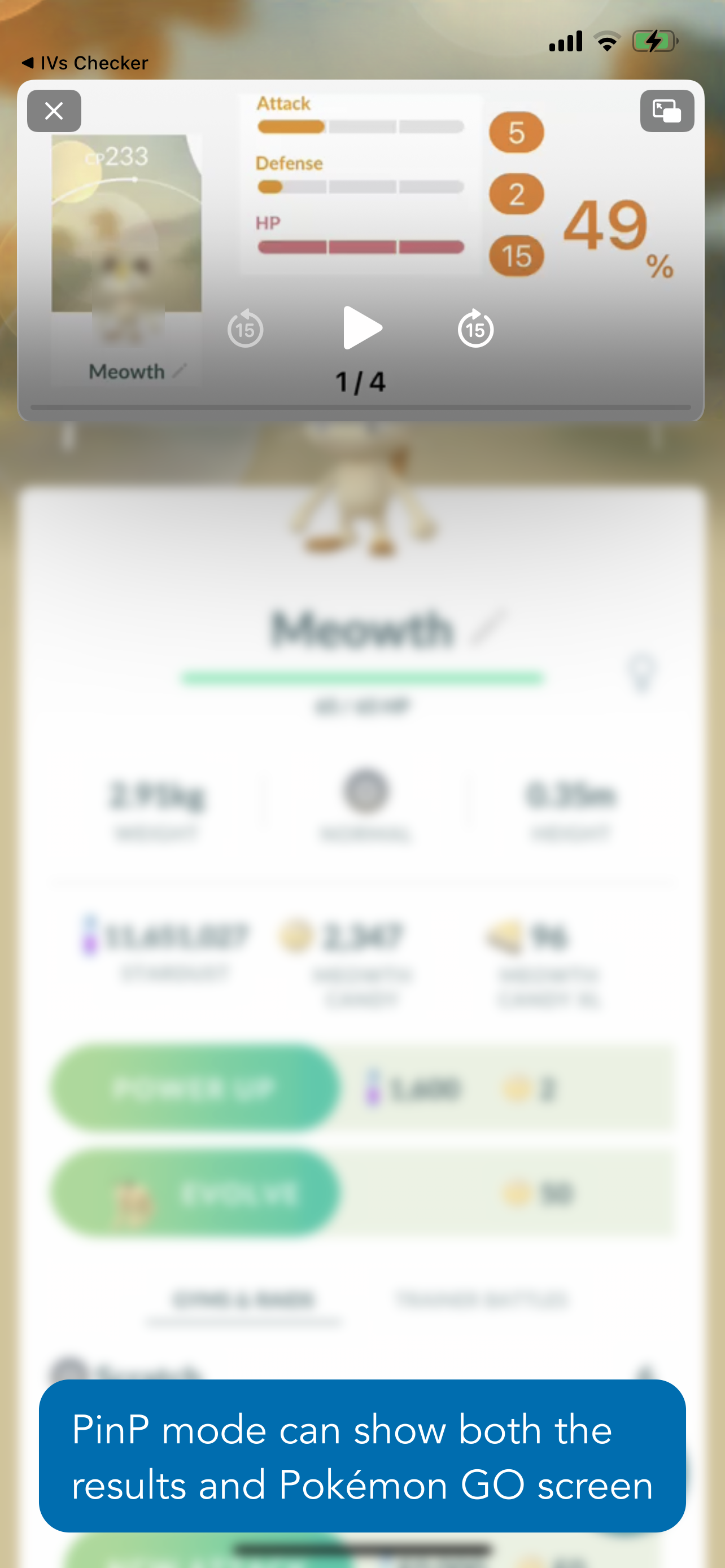 You can view the results in Picture in Picture so that you can easily record the IVs in the Pokémon GO app.